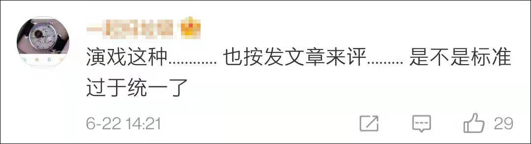 也有网友表示:“演戏也按发文章来评,是不是标准过于统一了?”