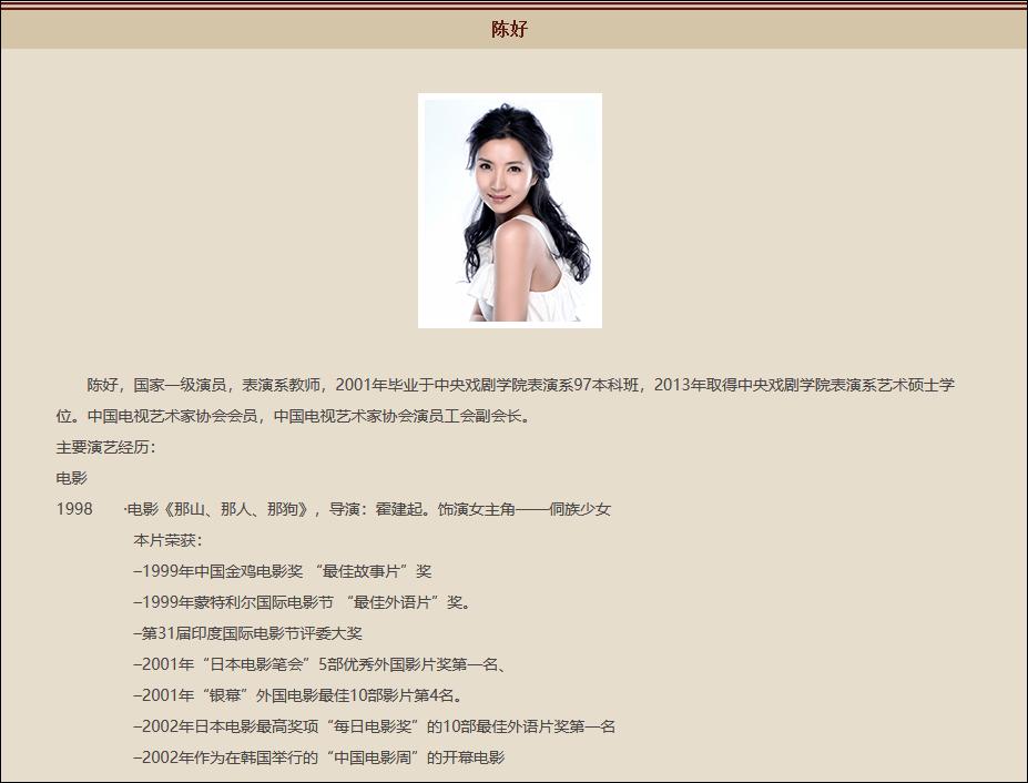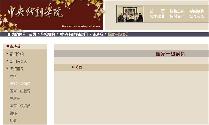 值得注意的是,中戏官网的信息简介中,陈好为国家一级演员、表演系教师,而非表演系教授。