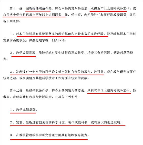 根据《高等学校教师职务试行条例》规定,无论是副教授还是教授,都必须发表过论文或者出版过著作、教科书;此外还有“承担5年以上讲师(评选副教授)或者副教授(评选教授)职务工作”、“教学成绩显著”等硬性条件。