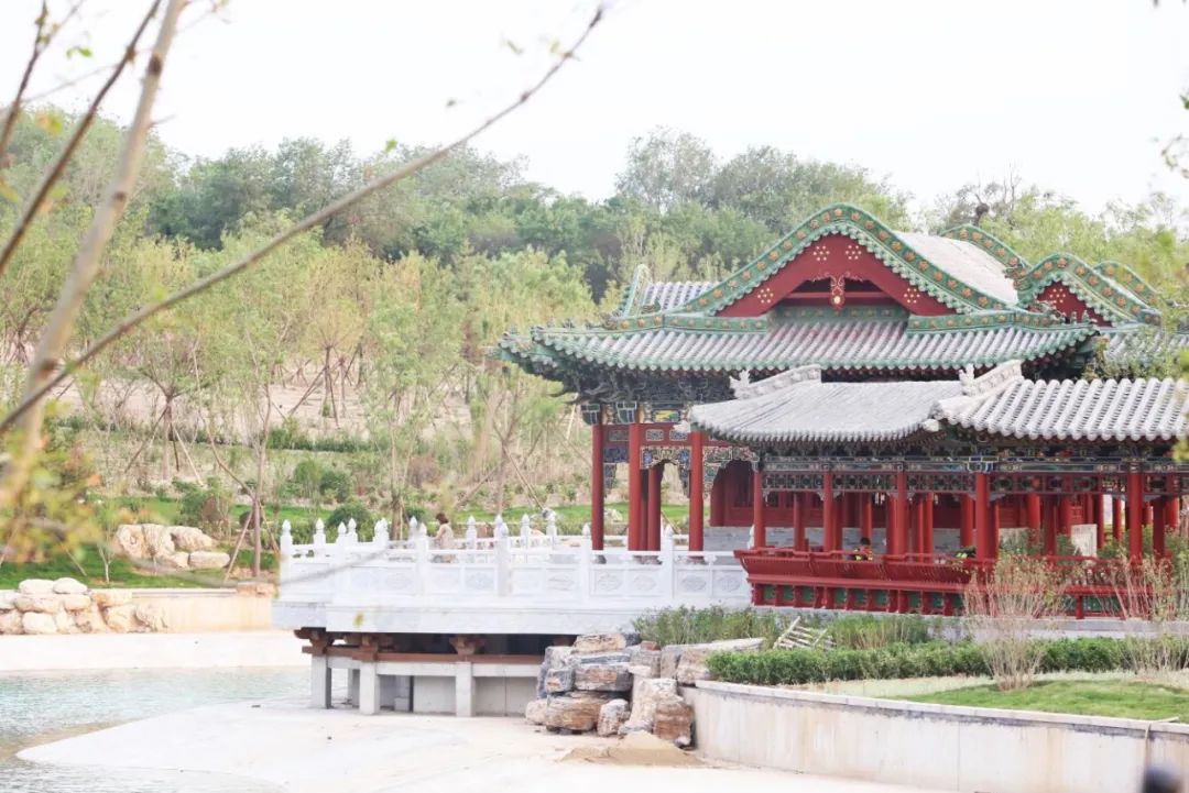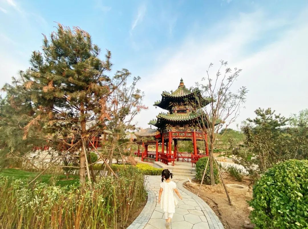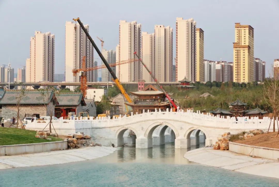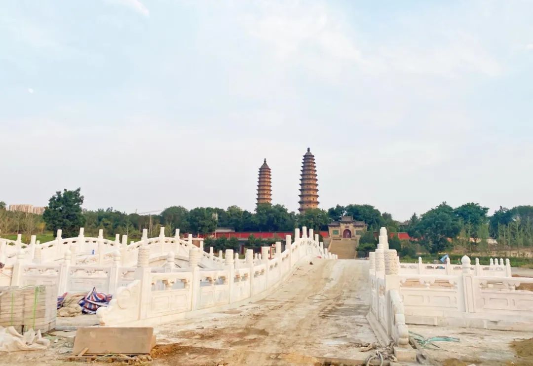 双塔公园的建设,以有着400年历史的巍峨双塔为核心,在对重点古迹永祚寺及周边原有古建和树种加强保护的前提下,增建大面积的山水景观以及仿古建筑群,构建出空间布局大疏大密、层次丰富的效果。双塔公园共建有16个仿古建筑群,总面积1.3万平方米。经过一年的紧张施工,公园目前景观绿化、水系建设、古建打造等主体工程已基本完工。