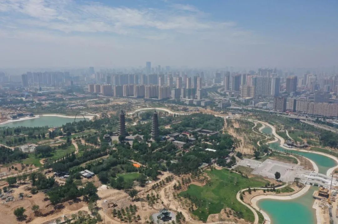 仿古建筑、环湖水系、绿树……6月22日,正在建设中的太原市双塔公园已经显露雏形。公园建成后,这里将成为太原市东部最大的休闲旅游园林地标,也将重现太原古八景“双塔凌霄”盛景。