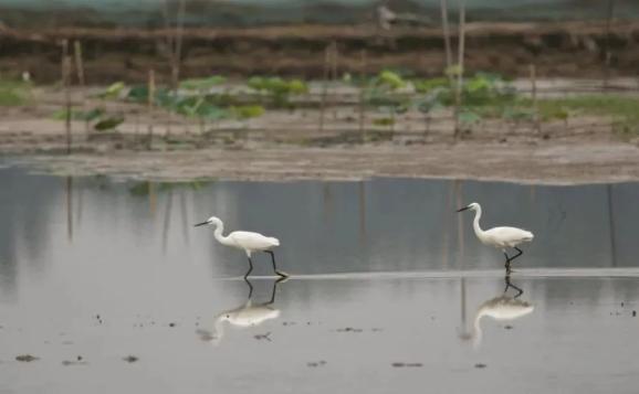 湿地风光如画,两只白鹭静享宁静时光