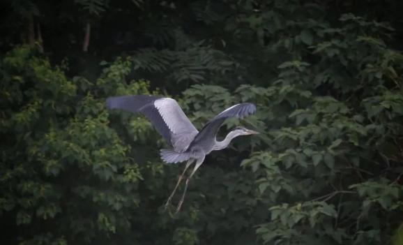苍鹭飞进树林,场景犹如秘境