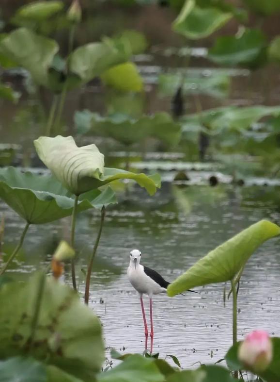 误入荷塘深处的一只黑翅长脚鹬(yù)