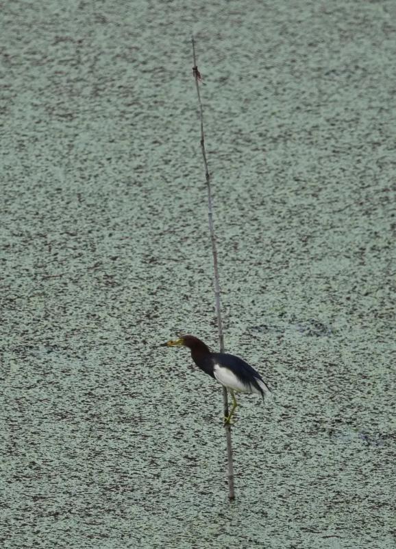 静伫竹枝觅鱼虾的池鹭