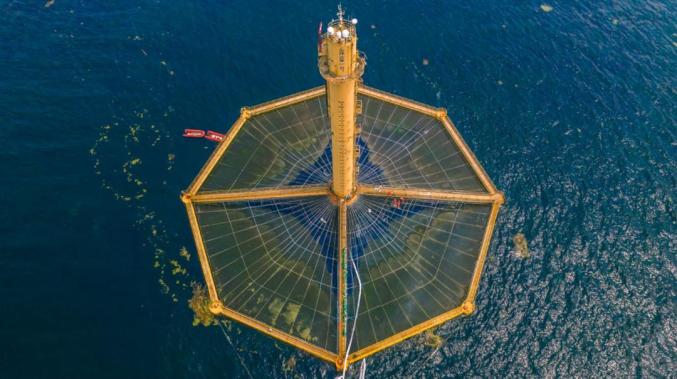如果说冷水团是养殖三文鱼的“天然雨林”,“深蓝一号”便是孕育三文鱼的“智能襁褓”。这座相当于40个标准游泳池大小、质量超过1500吨的“巨无霸”,总投资11500万元,是全世界最大的全潜式智能网箱,它的设计研发突破了多项核心技术,是我国在深远海渔业养殖装备自主设计研发上取得的重大突破,具有完全独立的知识产权。