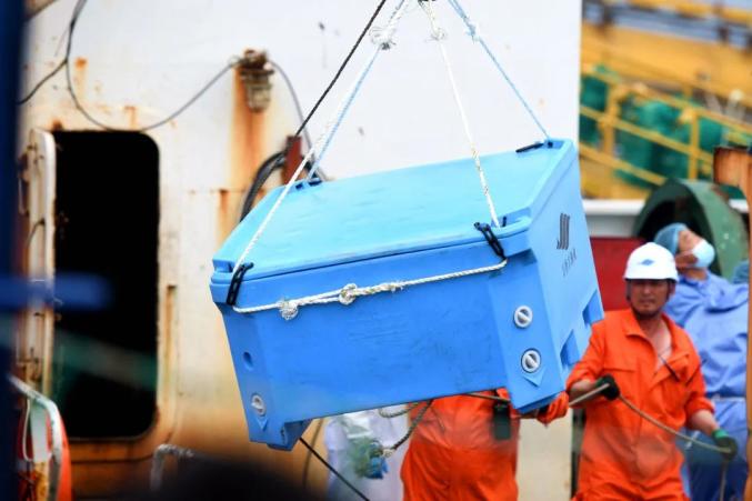 一箱箱三文鱼装船完毕后,将被运输船运往全国各地,第一批国产深远海三文鱼陆续“游”上消费者餐桌。