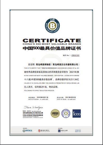 2020年,青岛啤酒博物馆被正式评为国家一级博物馆,与故宫博物院等国家级