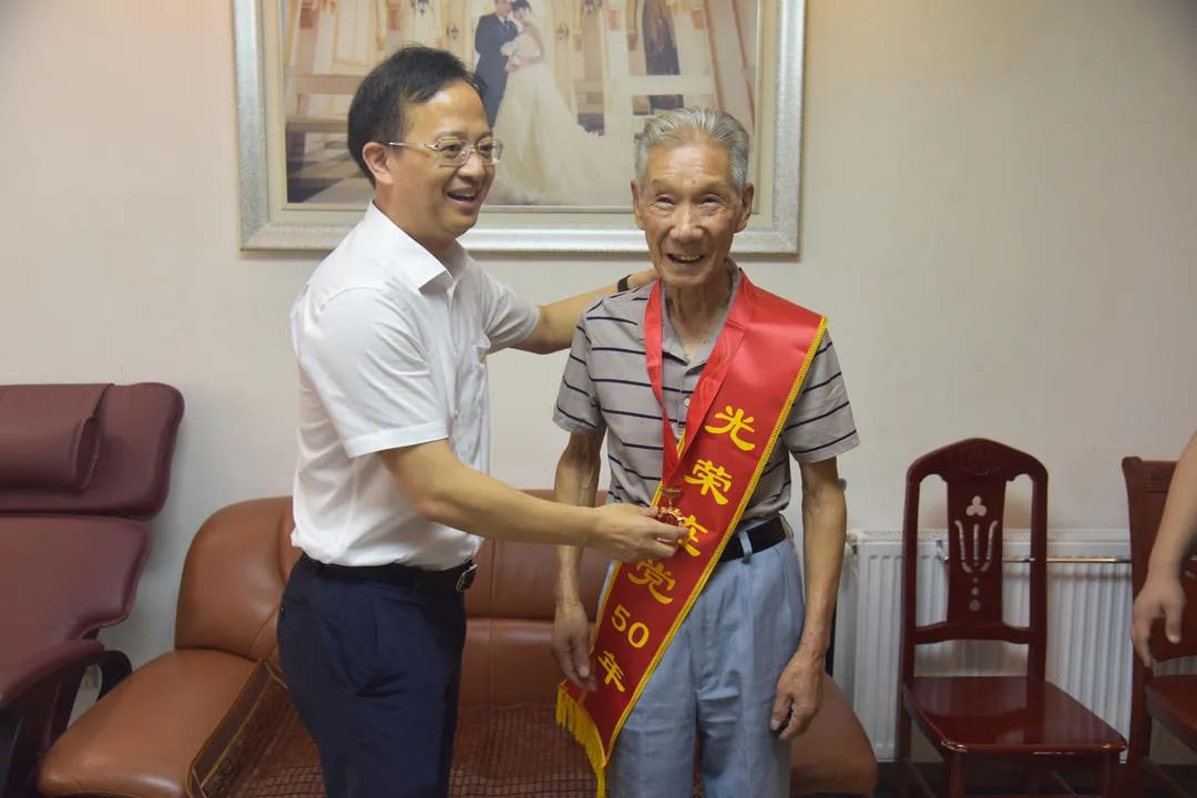 老党员范志明因身患高血压、心脏病、痛风等多种疾病,需长期吃药住院维持,生活比较困难。作为老党员、老退休职工,老人一直以来积极支持和拥护当地政府的各项工作。在范志明家中,高伟与老人亲切交流,拉家常、忆党恩、叙发展,并为老人送上“光荣在党50年”纪念章和慰问金,鼓励老人保持乐观向上的生活态度,有困难及时跟街道、社区反映,并要求街道、社区要多关心关注老党员的生活,帮助老党员解决生活中的难题,把党和政府把关怀和温暖送到老党员的心坎上。