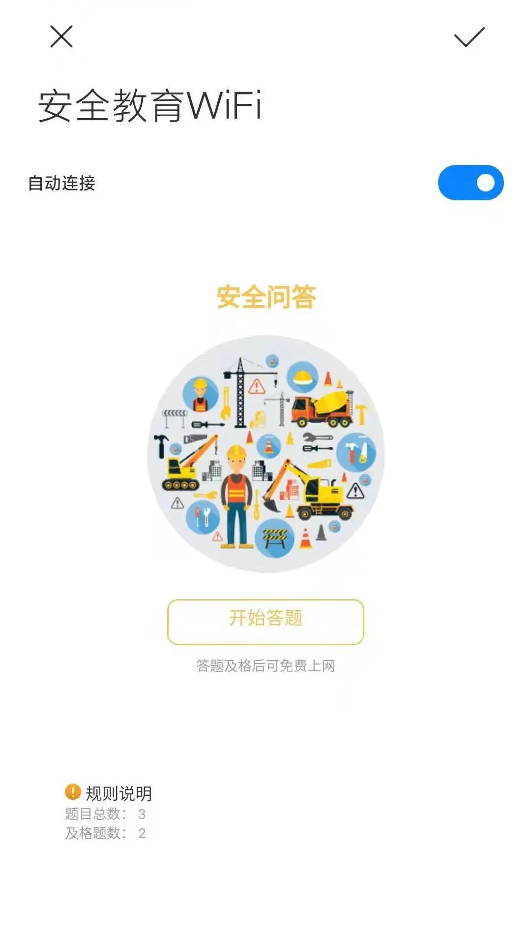 安全教育培训基地集学习、体验、培训为一体,根据需求对工人进行专业的安全知识深化培训。工人通过生活区WIFI安全教育答题系统答题,免费连接网络,丰富安全教育模式。
