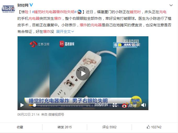 原标题:《睡觉时充电器爆炸险失明?》