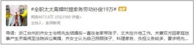 原标题:《结婚3年,全职妈妈离婚提家务补偿19万,最后拿到这个数......》