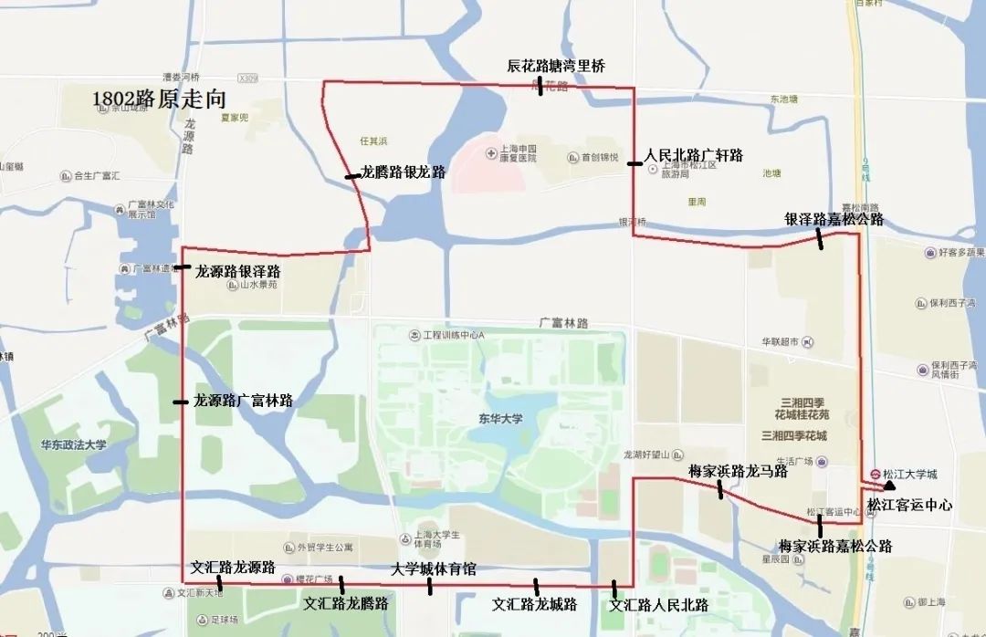 原走向:自松江客运中心起经嘉松公路、银泽路、人民北路、辰花路、龙腾路、银泽路、龙源路、文汇路、人民北路、梅家浜路至松江客运中心。(单向)
