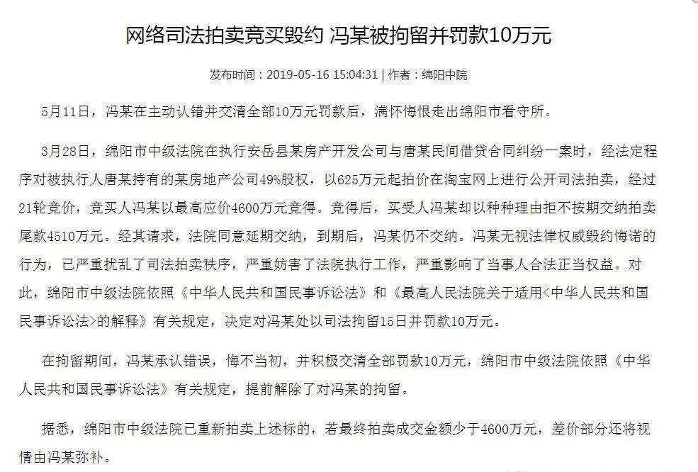 也就是说,假如上述司法拍卖最终交易成功,而买受人逾期无法支付,那就可能面临巨额债务的执行风险,甚至是牢狱之灾。