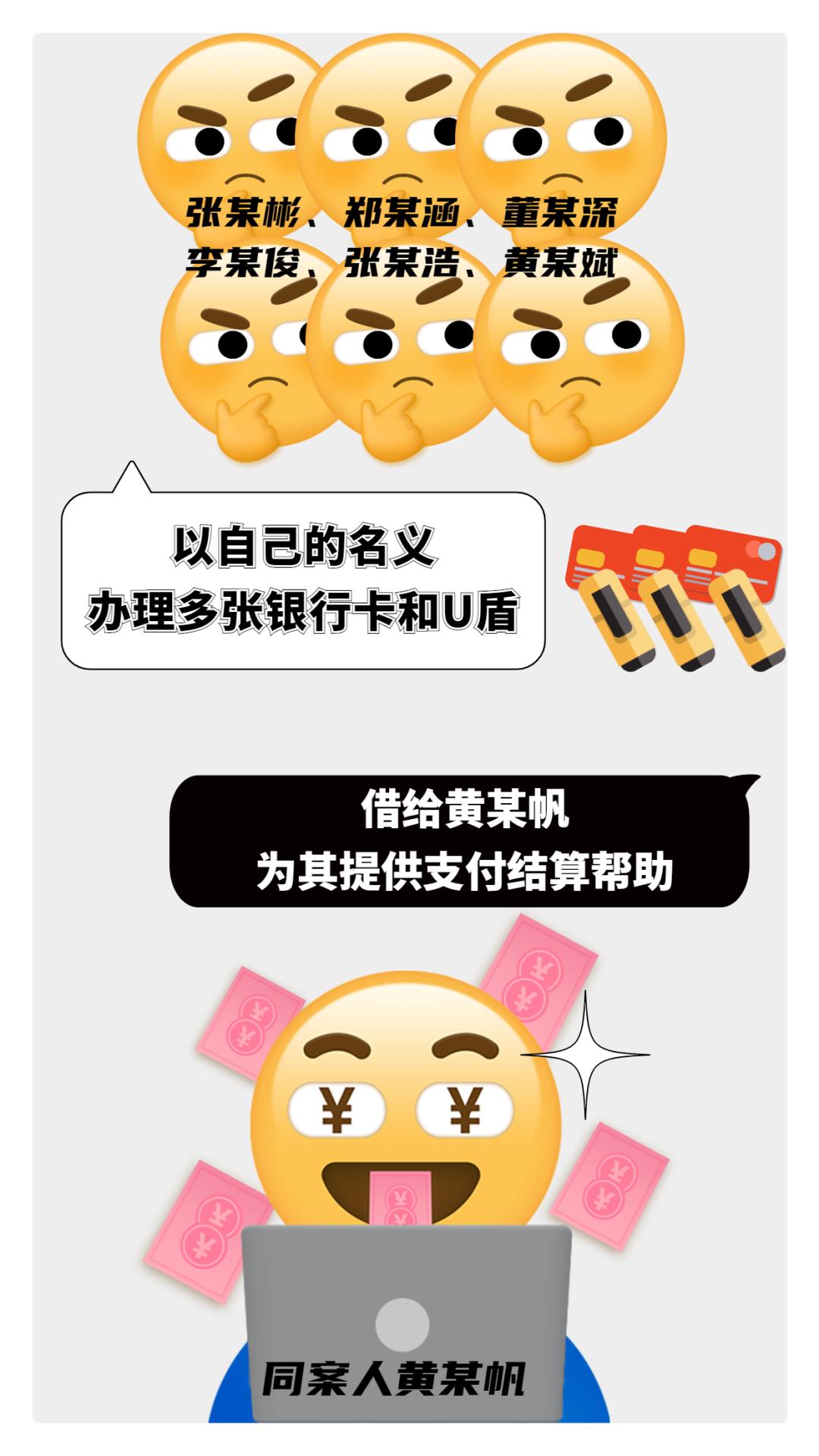 被告人张某彬、郑某涵、董某深、李某俊、张某浩、黄某斌在明知他人利用信息网络实施犯罪的情况下,仍以自己的名义办理多张银行卡和U盾并出借给同案人黄某帆(另案处理),为其提供支付结算帮助。