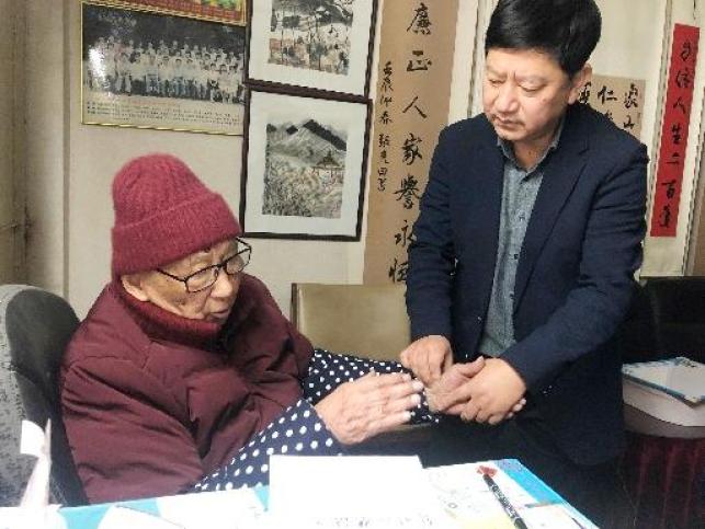 思及老人的年纪,一同前往拜访的舟山市中医药学会副会长、市中医院副院长李飞泽和舟山市中医药学会副秘书长、市中医院药剂科主任周国儿分别为老人做了简单的体检。王老牙齿已经全部掉落,说话略微有些含糊,经过仔细地把脉和观测舌苔,我们告诉王老,他的脉象缓和有力,舌苔薄白红润,像是“婴儿苔”,是长寿者的舌苔!王老听及此言,显得愈发高兴了,甚至颇有兴致地和我们谈及了那段抗战时光。