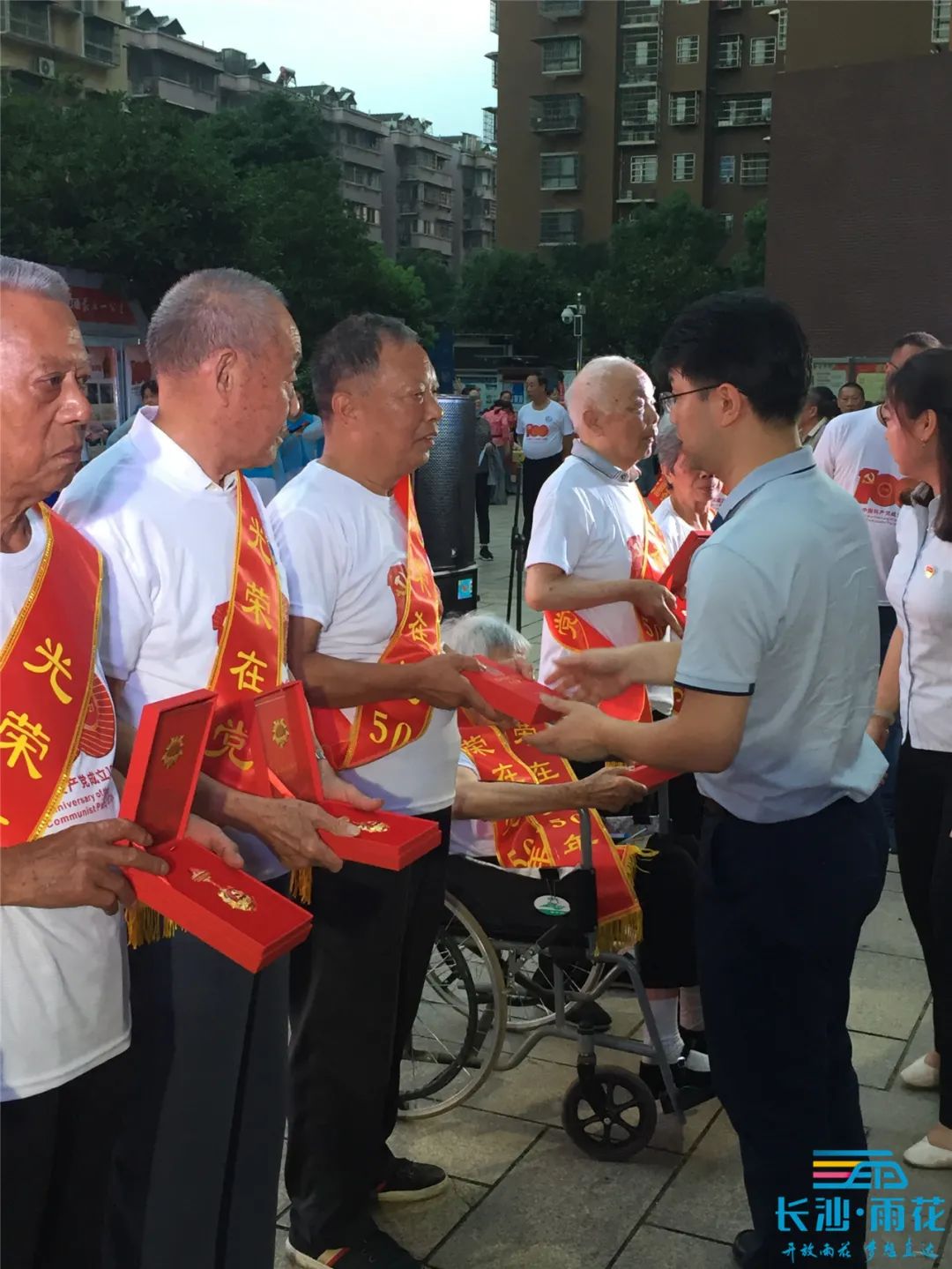 “一枚小小的纪念章,承载着光荣与梦想!”6月22日,接过沉甸甸的“在党50年”纪念章,72岁的苏印南老人内心澎湃不已。当晚,雨花亭街道自然岭社区举行“百年辉煌路,与党共成长”献礼中国共产党建党100周年文艺汇演活动,并为辖区“光荣在党50年”的10名老党员颁发纪念章。