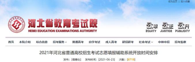 2021年河北省普通高校招生考试志愿填报辅助系统开放时间安排
