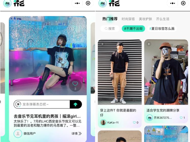 可以认为京东希望通过芥么拓展女性消费者,但在服饰穿搭的内容里,只有INXX、BTW等几家入驻京东的国潮品牌——尽管它们都是最近几年蹿升较快的品牌,但依旧无法给女生带来足够的吸引力和发现感。大部分女生的购物习惯,倾向于选择服装风格,而非品牌。