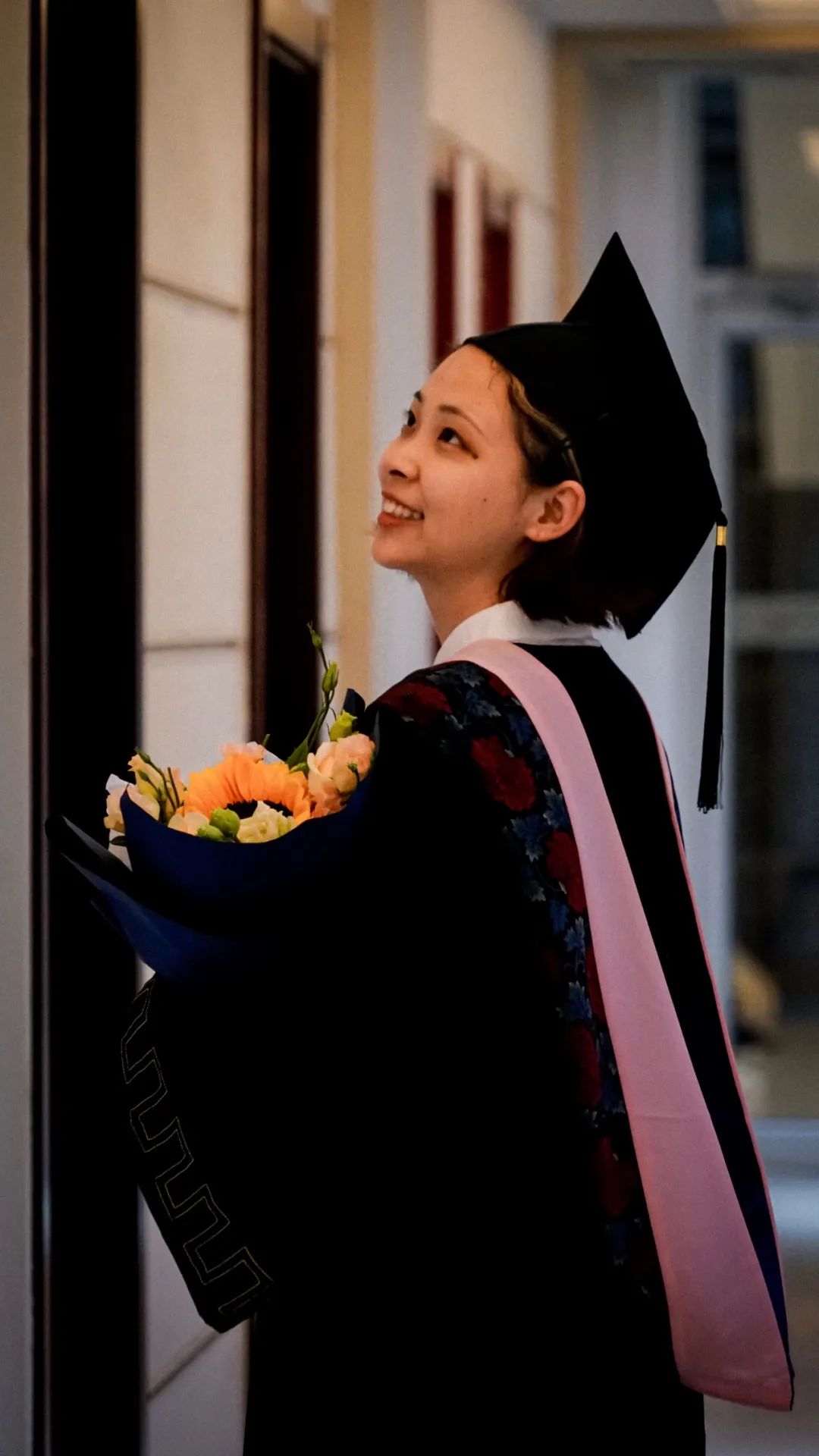 毕业典礼前一周的晚上,我才深切地意识到我真的要离开这间校园,开启新阶段的生活了。去年毕业典礼时,有位老师的寄语是“因为梦想,一群少年来到这里;因为责任,一群青年从这里出发”,我们相互陪伴、一起成长了吧四年。希望自己能成为坦然无畏地追寻所学、追寻所爱的人。——2017级广播电视学专业学生 卢肖依