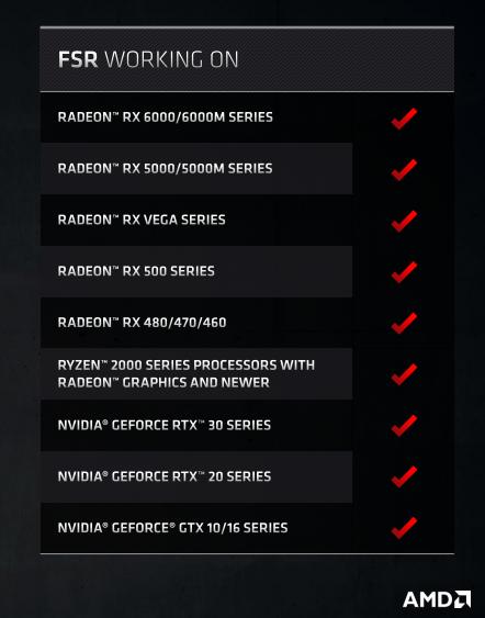 而 FSR 的出现,最大程度的提升了老显卡们的性能,甚至囊括了一些核显 APU 。