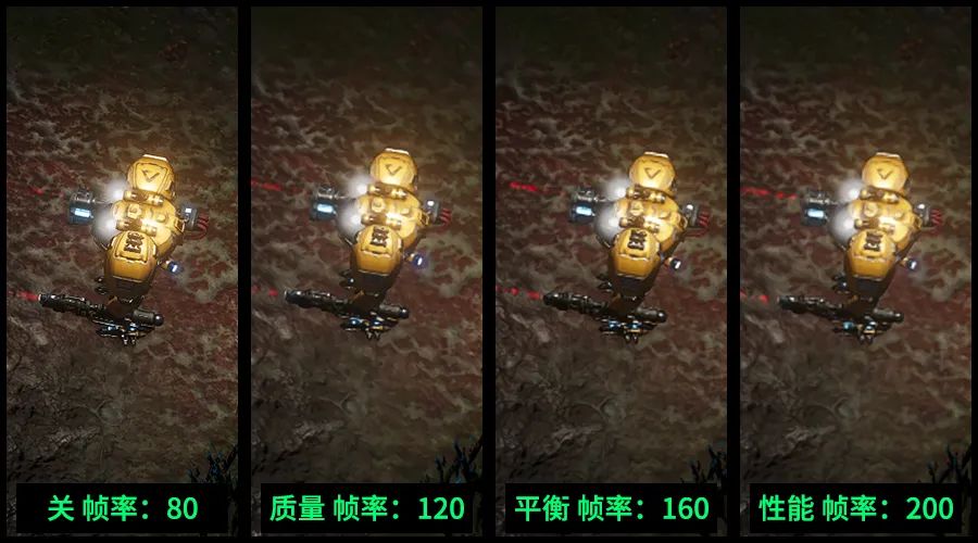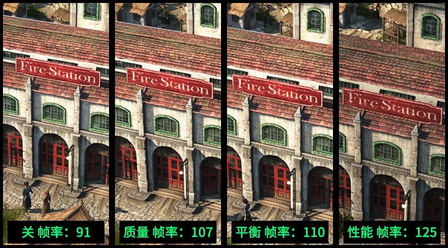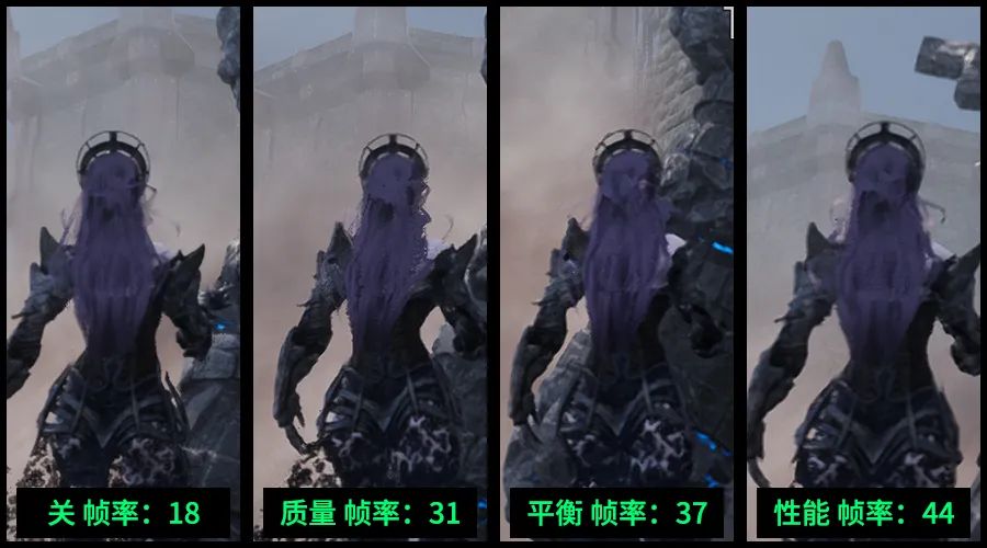 细节和帧数在这里,分别对应原画关闭FSR、质量档、平衡档和性能档。 ▼