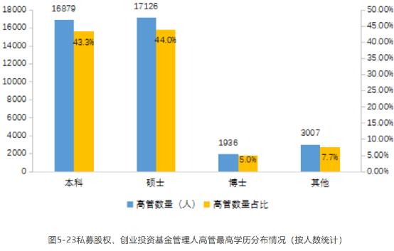 我们再来看股权、创投私募管理人高管的年龄、学历分布,以“7080后”为主,最高学历本科及以上为主。