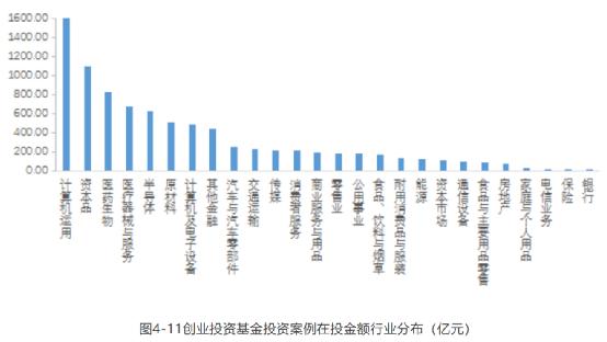 再看私募创业投资基金的情况,报告称,创投基金五成以上资金投向国家重点支持行业。从在投案例数量的行业分布看,截至2020年末,前五大行业为“计算机运用”、“机械制造等工业资本品”、“医药生物”、“医疗器械与服务”和“计算机及电子设备”。