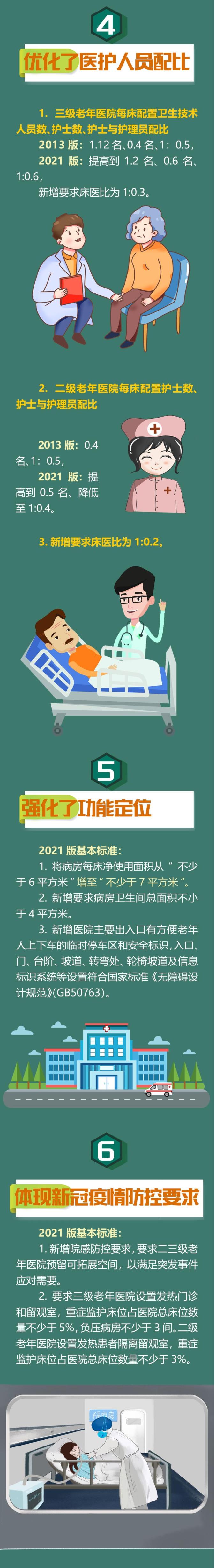 调整了老年医院名称。将既往医院准入标准中带有歧视意味的“病”字去掉了,同时结合疫情防控要求,提出二、三级老年医院要预留可拓展空间,以应对突发公共卫生事件需要。
