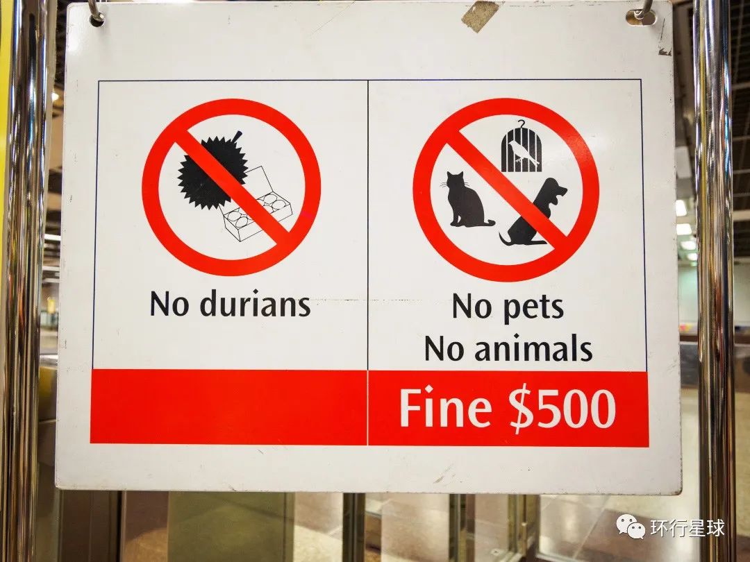新加坡法律禁止地铁上吸烟、饮食、易燃产品和榴莲