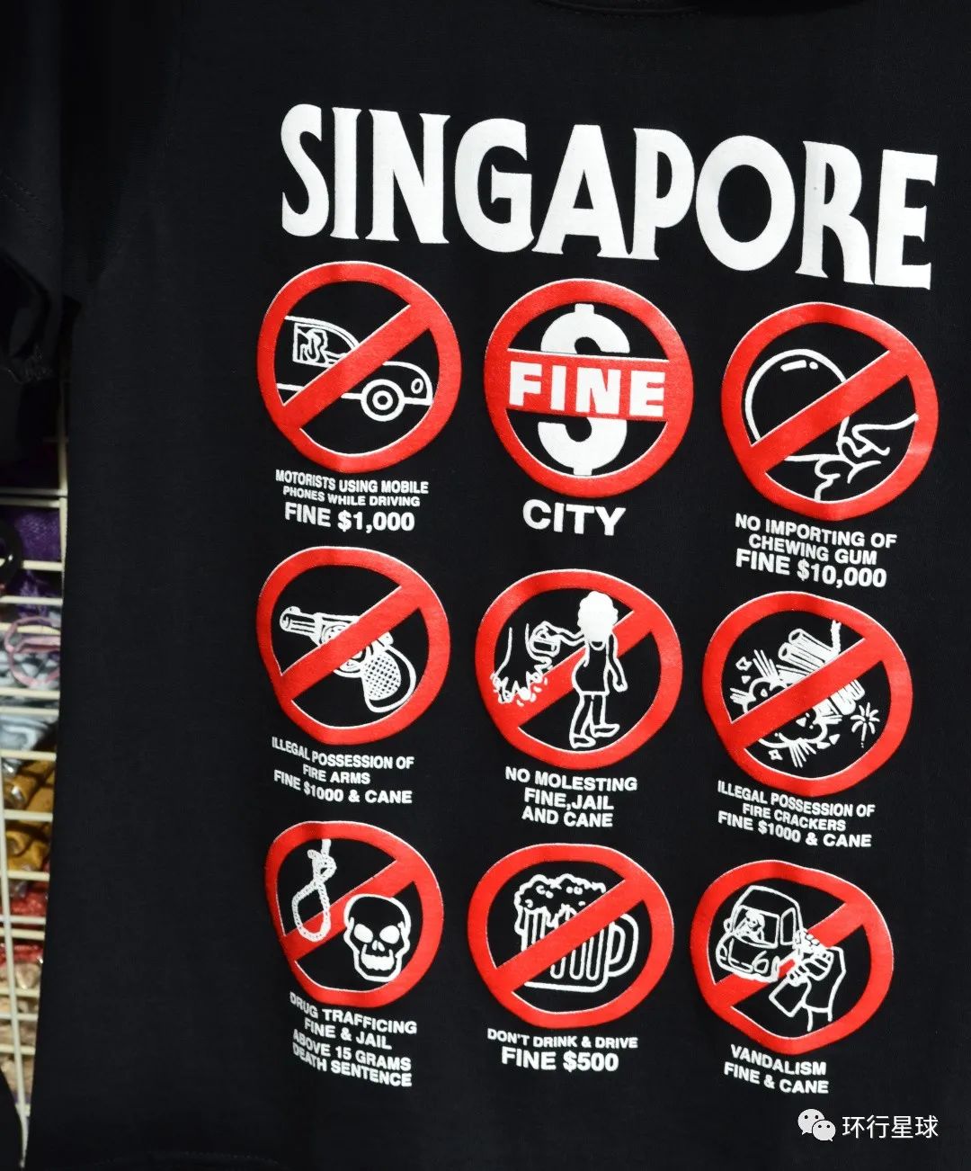 当然,新加坡这些繁琐的法律法规,并非只是针对自家国民,任何来新加坡旅行或生活的外国人,也必须遵守。然而对于初来咋到的外国人,很可能会由于不了解这些而中招。因此,新加坡的很多商店里,经常会售卖标明各项罚款项目的冰箱贴、T恤等纪念品,以提醒外来游客不要触犯法律。