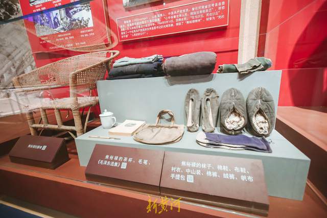 在展厅醒目的位置,陈列着有关焦裕禄同志的生平事迹影像资料以及部分遗物,包括生前所用过的藤椅、茶杯、毛笔、鞋袜、旧衣物等,以及一本珍藏的《毛泽东选集》。1922年,焦裕禄出生在山东淄博北崮山村的一个贫苦家庭,曾成为民兵投身解放博山县城的战斗。解放战争后期,他又随军离开山东到了河南,此后便一直在河南工作,直至生命的终点。作为县委书记的榜样和党员干部的楷模,焦裕禄用实际行动铸就了亲民爱民、艰苦奋斗、科学求实、迎难而上、无私奉献的焦裕禄精神,激励和感染着一代又一代党员干部和人民群众。