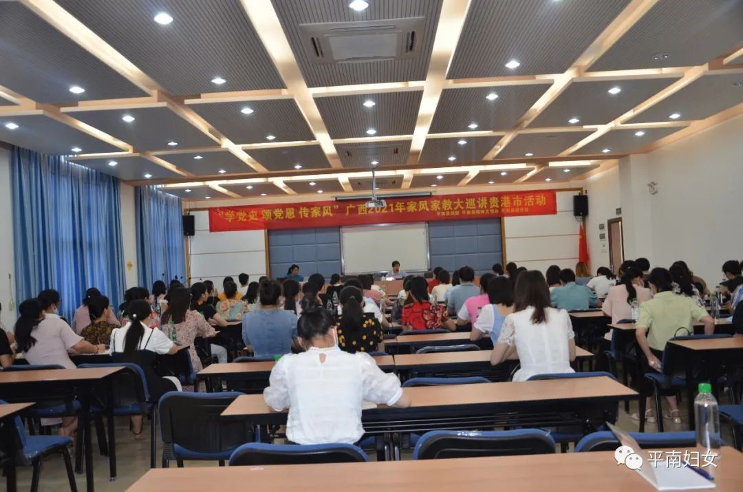 6月21日,“学党史 颂党恩 传家风”广西2021年家风家教大巡讲贵港市活动在平南县委党校举办,贵港市委党校哲学公共管理教研室主任、贵港市家庭教育专家库成员罗秀圆为现场100多名妇女干部授课,县妇联主席郭贤玲、县委宣传部副部长韦燕参加了讲座。