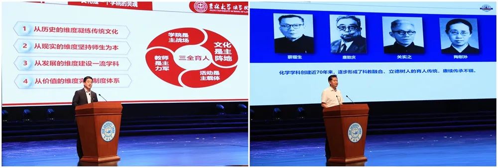 会上,与会人员共同观看了“三全育人”综合改革试点建设宣传片。“三全育人”综合改革课程育人牵头单位教务处、文化育人牵头单位党委宣传部,试点学院代表法学院、化学学院、电子科学与工程学院、地球探测科学与技术学院负责人分别作交流发言。