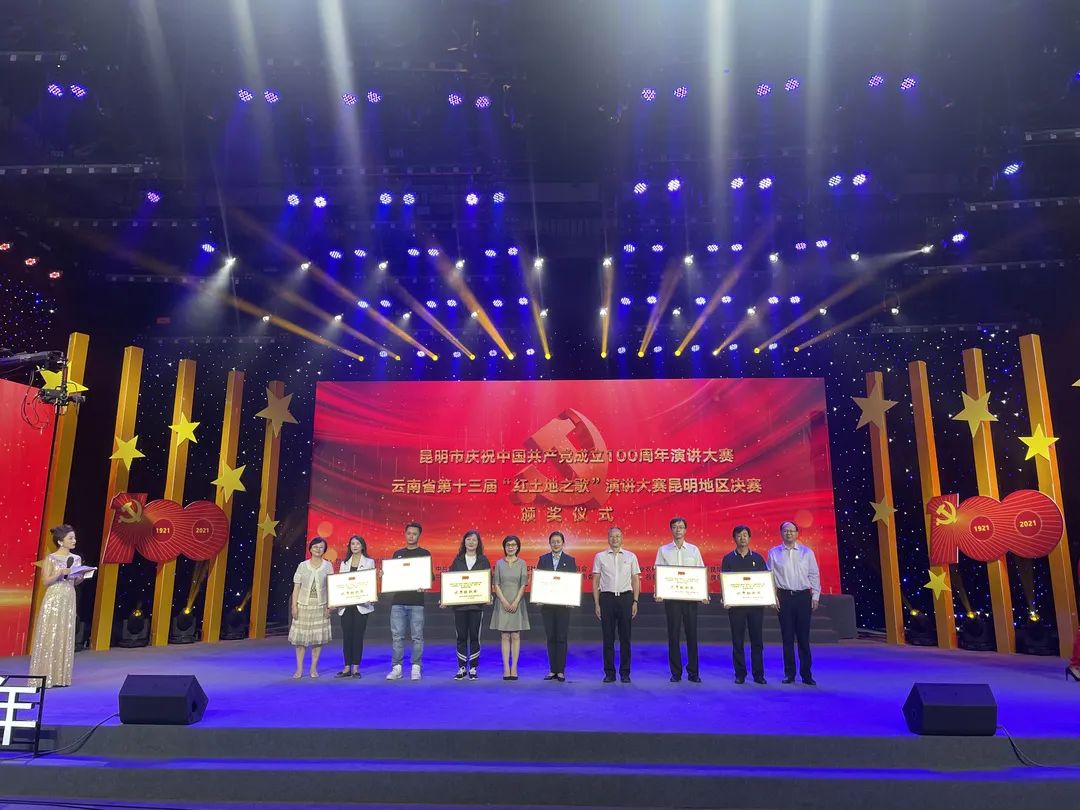 6月23日晚,“昆明市庆祝中国共产党成立100周年演讲大赛暨云南省第十三届‘红土地之歌’演讲大赛市级决赛”颁奖仪式顺利举行。