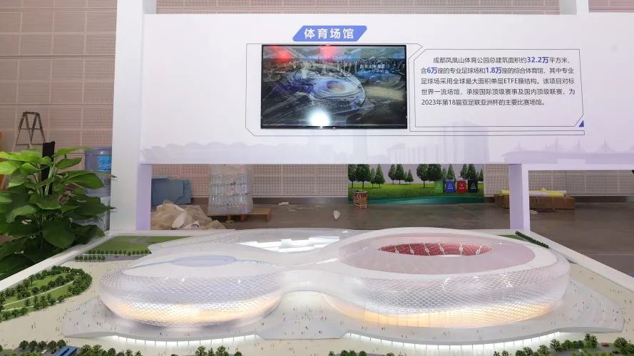 整个展区摆放了成都天府国际机场、上海世茂深坑酒店、杭州国际博览中心、成都凤凰山体育中心等心多个等比例缩放的工程实景模型,直观、真实、还原。