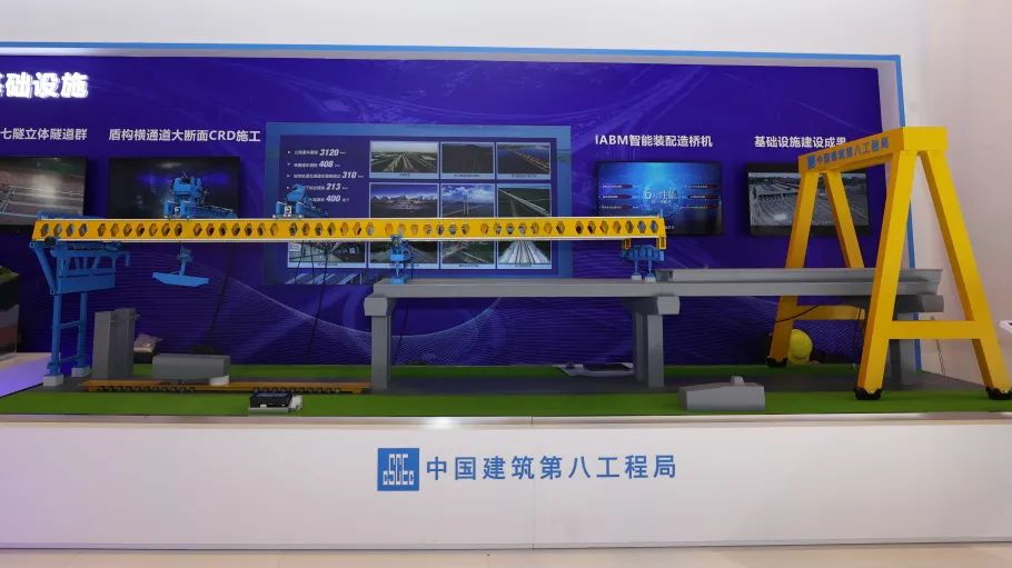 l IABM智能装配造桥机是服务大型市政桥梁建设的智能化施工机械,首次实现了将工厂预制的立柱、盖梁和箱梁在现场完成一体化安装,能够在30分钟之内架设好一片200t吨重的盖梁,并且能够做到线上喂梁,线下提梁,智能一体化操作系统可实现关键工序自动化,消除人工操作的误差,预计每公里架设施工可节省7天,大大提高了安全性能和工效。