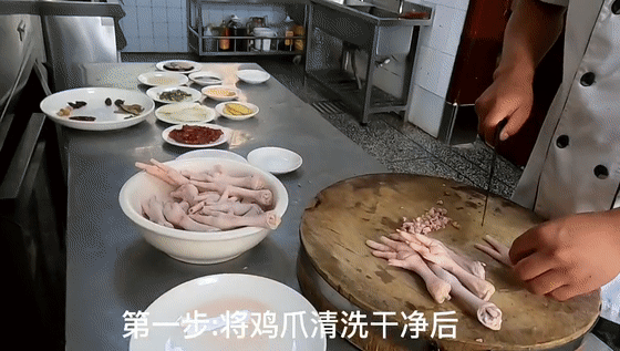 将鸡爪清洗干净后,去掉鸡爪指甲备用。
