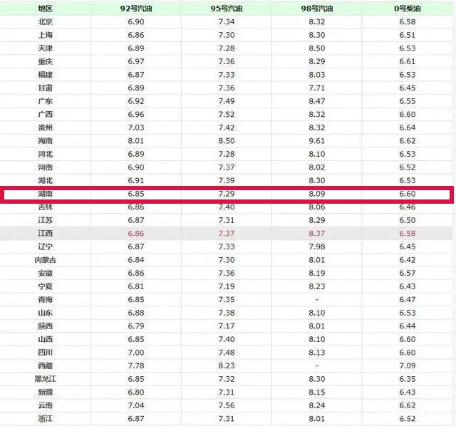 6月25日,全国加油站92、95号汽油最新售价