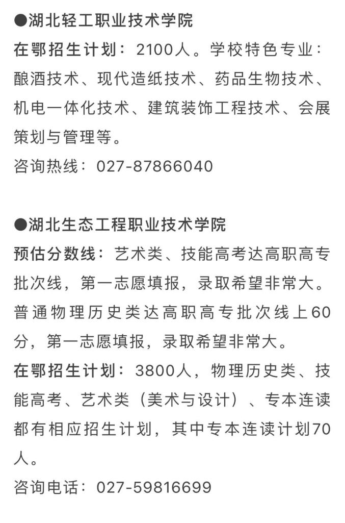 在鄂招生计划:本科普通批首选科目历史737人;首选科目物理887人;艺术本科A书法学10人;艺术本科B美术学类8人、设计学类156人;体育本科批76人;技能高考本科计算机类40人;高职高专普通批首选物理10人;首选历史10人。
