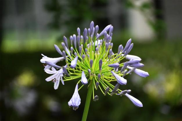 公园里的百子莲,在充分享受雨水的滋润下,纷纷抽苞吐信,花开艳丽。