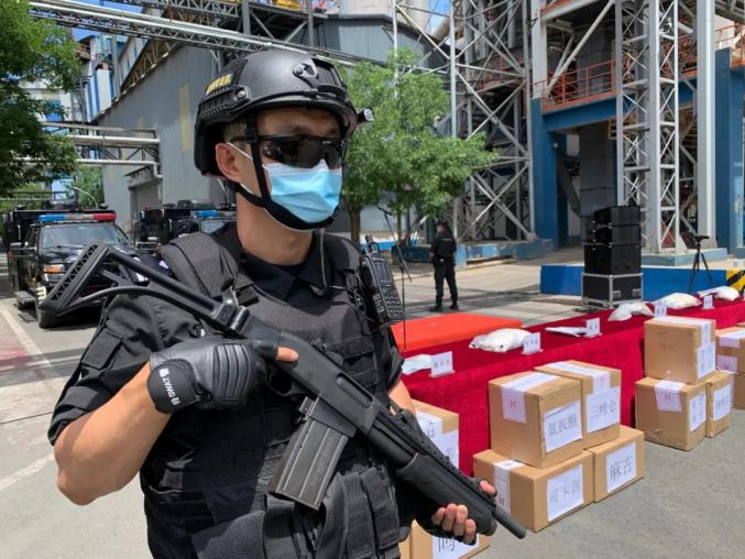 6月10日,北京市公安局举行2021年公开销毁毒品活动,共集中销毁冰毒、海洛因、大麻等各类毒品137公斤。