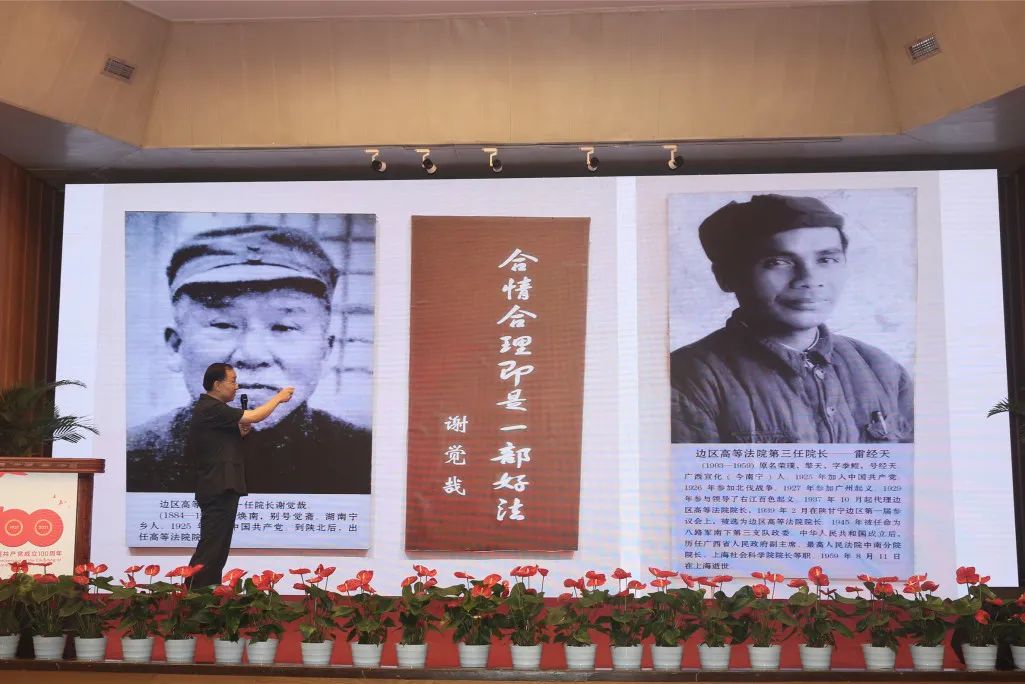 马院长指出,伴随着党的百年光辉历程,一代又一代法律人传承红色法治基因,构筑起了中国司法的独特精神谱系,为我们司法工作提供了丰厚滋养,而以马锡五审判方式为代表的陕甘宁边区司法理念及制度,是其中非常重要的、具有基础意义的篇章。