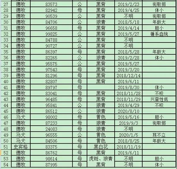 6月22日,中国刑事警察学院发布一则《淘汰犬出售公告》,称将以竞拍方式出售54只已考核淘汰的受训犬。在《淘汰犬信息表》中,除写明了犬种、性别等基本情况外,还对应标明了该犬只的淘汰原因,如“胆小”“长毛”“后肢软”“衔取弱”等。