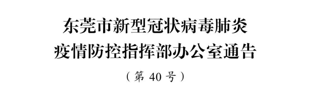 原标题:《东莞市新型冠状病毒肺炎疫情防控指挥部办公室通告 (第40号)》