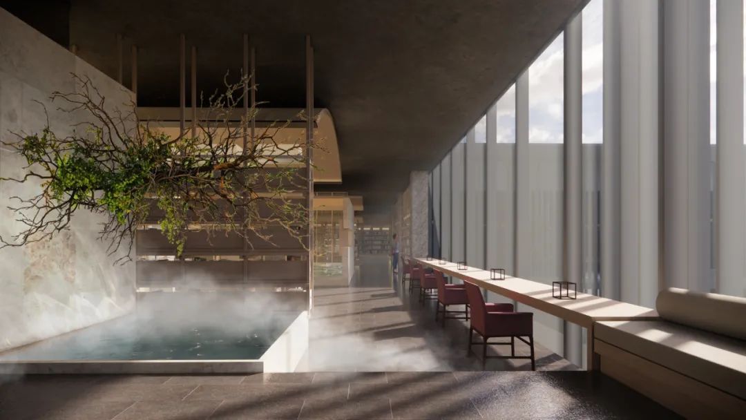 为实现这个目的,苏州店的每个空间将仅通过隔断的方式及顶面造型去区分,自然形成透景、框景的流动空间。室内延续建筑元素,采用自然与工业的材质,立面的设计手法采用简单的几何及解构主义。