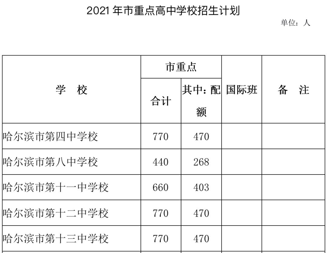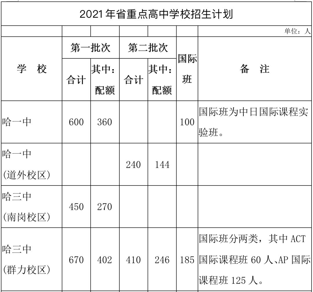 1.哈四中、十三中、十四中、一二二中、呼兰一中的统招生,纳入省重点第二批次招生计划,列入全市招生范围。