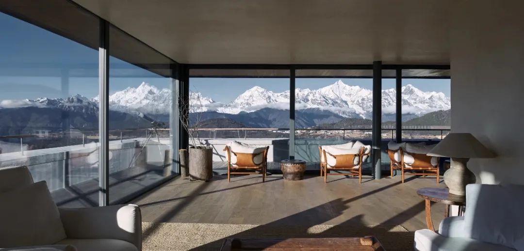 没错,不起床就可看雪山,“既下山•梅里酒店”便是其中之一。
