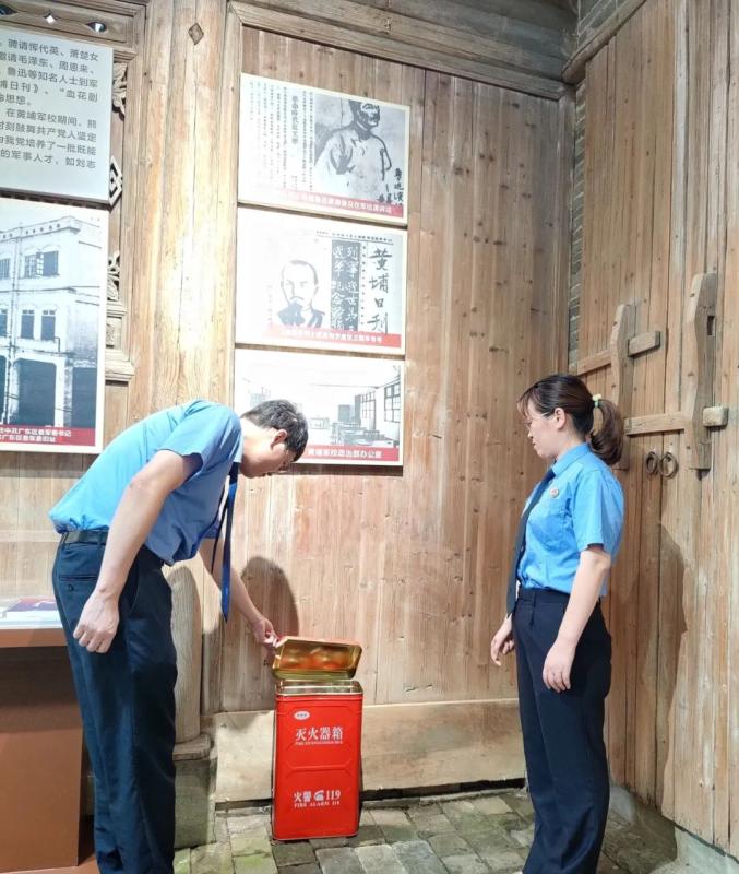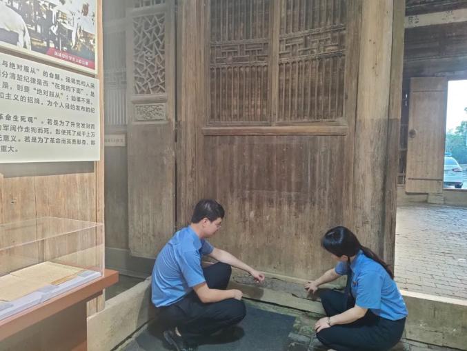 检察人员和消防、文物部门工作人员一起到木门军事会议会址调查消防设施安装、运行情况。