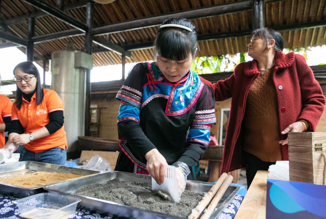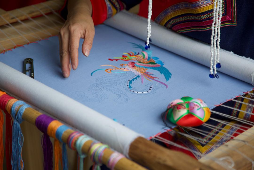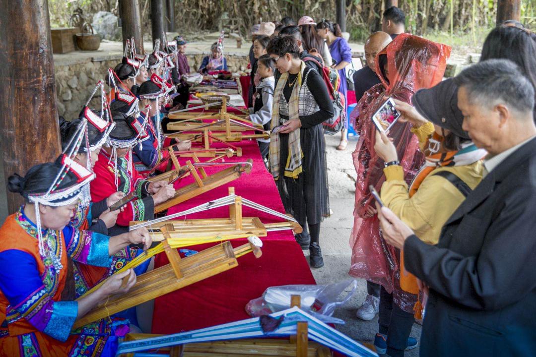 这里完整保留了畲族历代流传下来的民俗及文化风貌。织彩带、编草鞋、刺绣、畲族银饰制作......畲寨东弄将传统文化和现代艺术进行集中展示,碰撞出独特的艺术美。